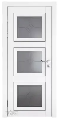 Межкомнатная царговая сборная дверь DO-DEKANTO 3 Белый бархат с черными молдингами и серым дымчатым стеклом с наливным рисунком. Дверь насыщенного белого цвета с бархатистой текстурой в классическом исполнении станет украшением любого интерьера !