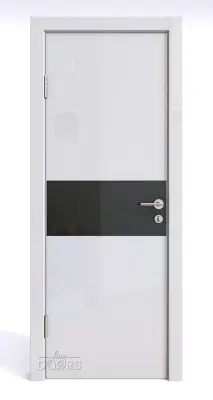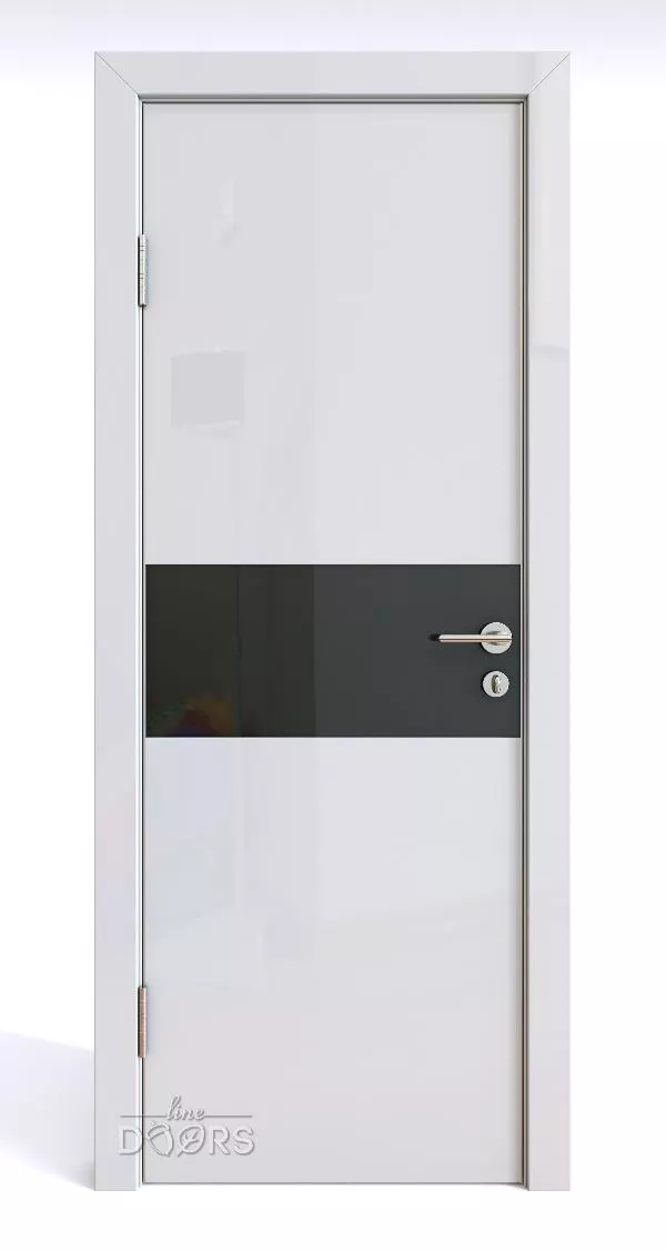 DO-501 Белый глянец с черным стеклом (ДО-501) - межкомнатная дверь с алюминиевой кромкой по вертикальным торцам полотна и предустановленным магнитным замком!