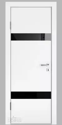 DO-502 Белый бархат с черным стеклом - межкомнатная дверь с алюминиевой кромкой по вертикальным торцам полотна и предустановленным магнитным замком!