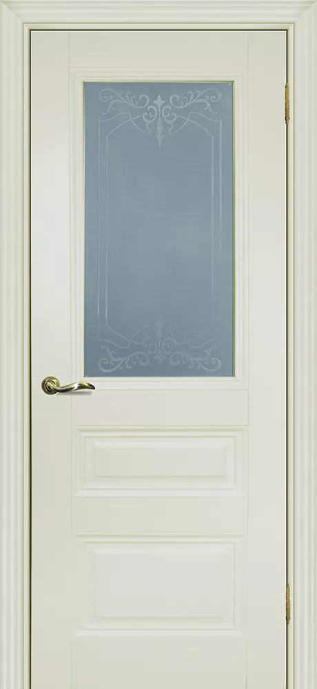 Царговое полотно, выполненное в гладком матовом покрытии, приятным на ощупь, обладающее высокими эксплуатационными характеристиками. Безопасный для здоровья и практичный материал. Бескромочная технология. Сборно-разборная конструкция.###-line-###Полотно комплектуется фигурным багетом и объемной филенкой.